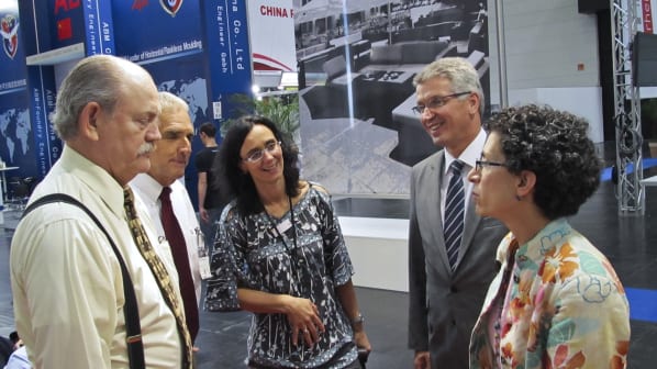 Meanwhile, at the Hunter (Schaumburg, Illinois-USA) booth, which was immediately adjacent to the Maus booth, activity was brisk throughout the event. Hundreds of metalcasters from dozens of countries around the world visited and, in several cases, consummated deals with Hunter, the global leader in matchplate molding systems and mold handling lines for green sand casting.