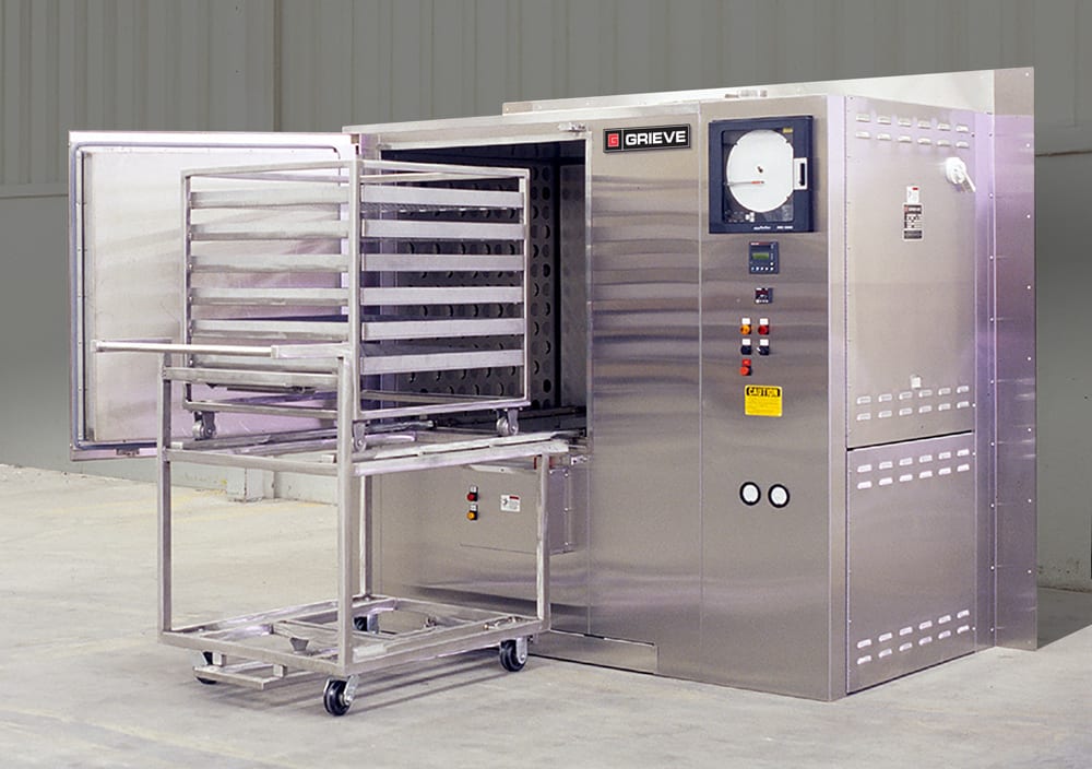Controls on this Grieve oven include a programmable temperature controller, separate heating element control contactors, a disconnect switch and a power controller to ensure precision proportioning of electric power to heating elements.